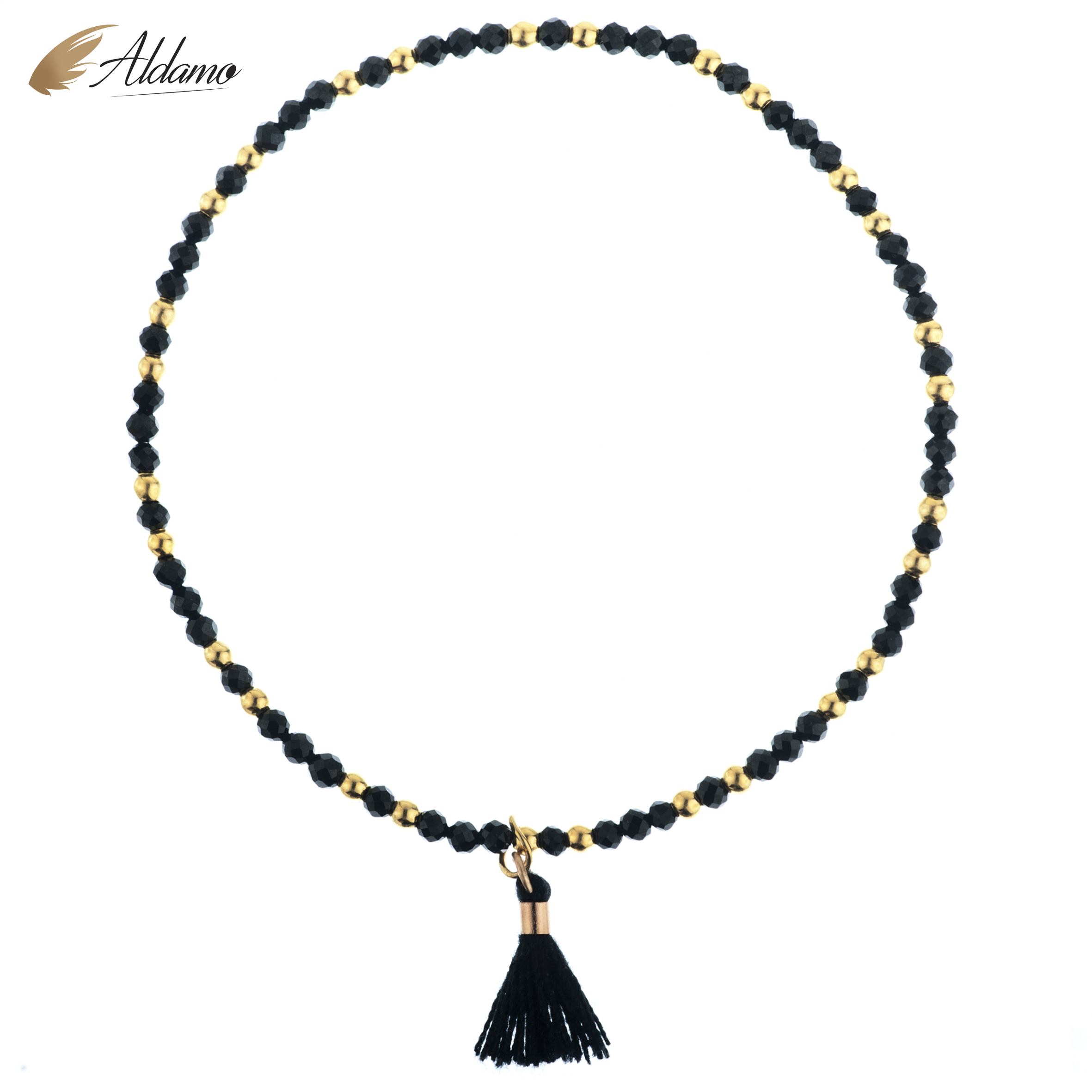 Bransoletka Glamour wykonana z naturalnych kamieni czarnych spineli 2mm oraz kuleczek ze srebra 2mm pokrytego złotem o grubości 1 microna.