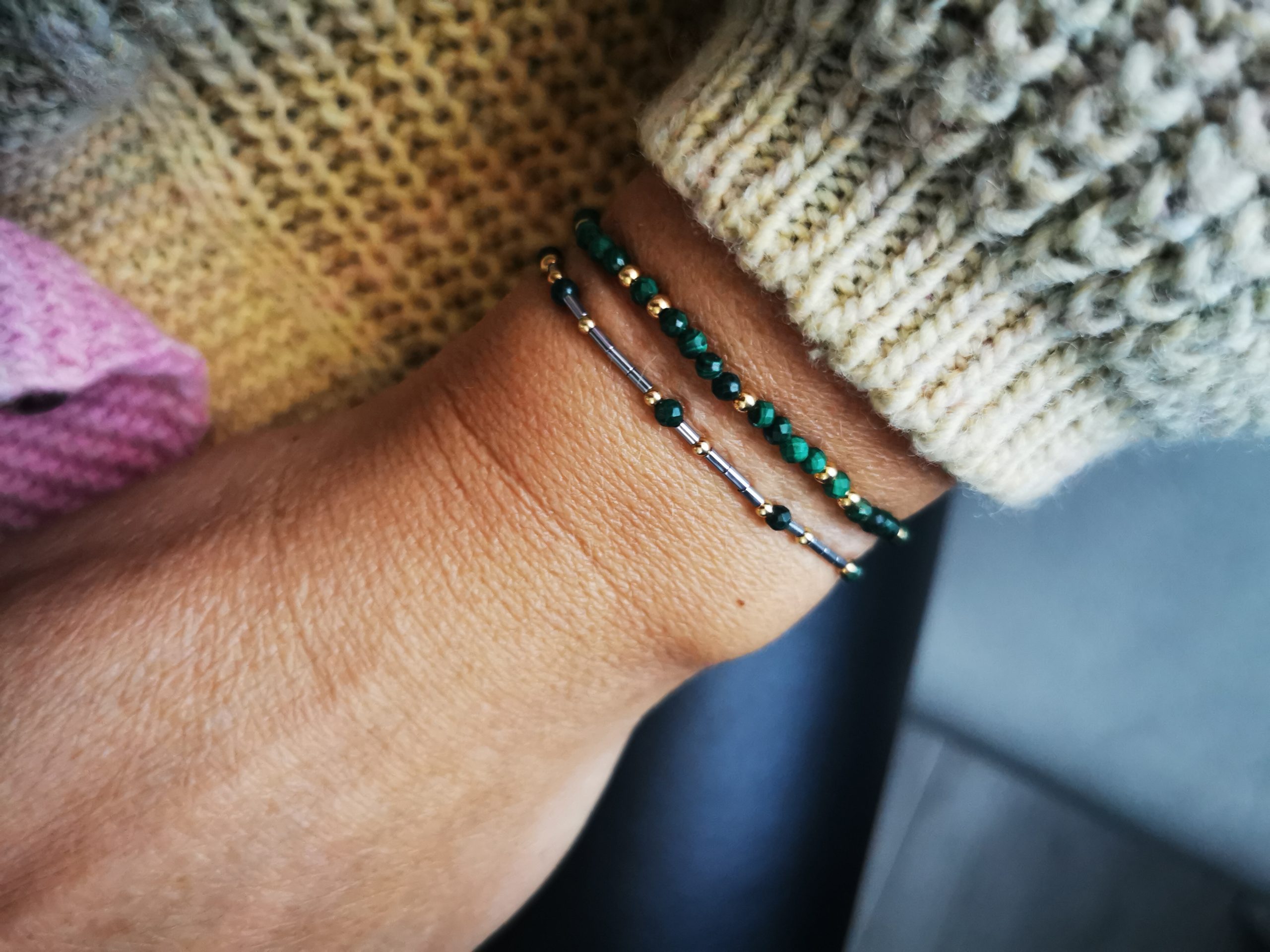Bransoletka elastyczna Green day wykonana z kamieni naturalnych- malachitów ok 2,5 -3mm oraz kuleczek gold filled 2,5mm.