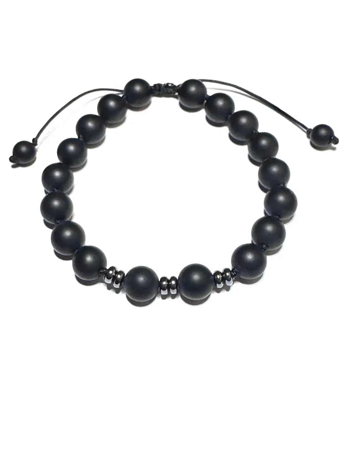 Bransoletka męska z kamieni naturalnych. Onyks to kamień symbolizujący siłę, mądrość i ochronę. Wiele kultur przypisuje mu moc wzmacniania odwagi, wytrwałości i odporności emocjonalnej, a także wspierania koncentracji i pomaga w podejmowaniu trudnych decyzji.