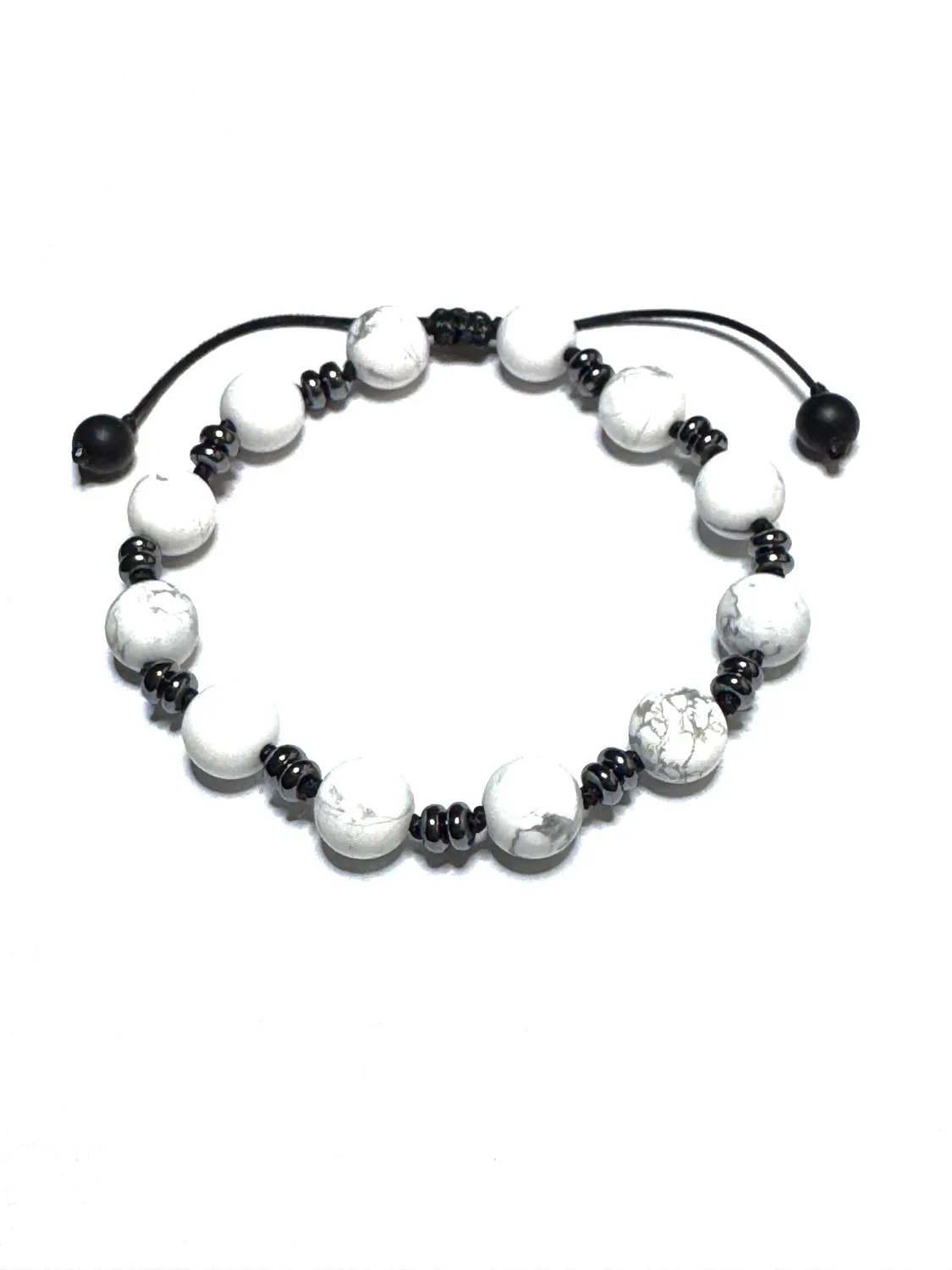 Bransoletka męska z kamieni naturalnych. Howlit jest minerałem kojarzonym z uspokajaniem, cierpliwością i wzrostem samoświadomości. Przypisuje mu się właściwości łagodzące stres i napięcie.