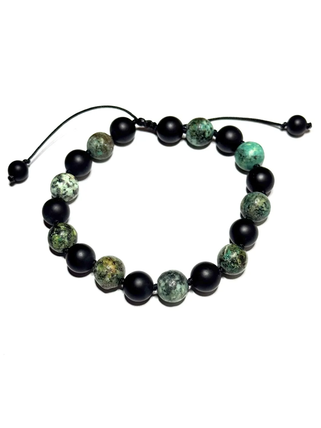 Bransoletka męska z kamieni naturalnych. Onyks to kamień symbolizujący siłę, mądrość i ochronę. Wiele kultur przypisuje mu moc wzmacniania odwagi, wytrwałości i odporności emocjonalnej, a także wspierania koncentracji i pomaga w podejmowaniu trudnych decyzji.