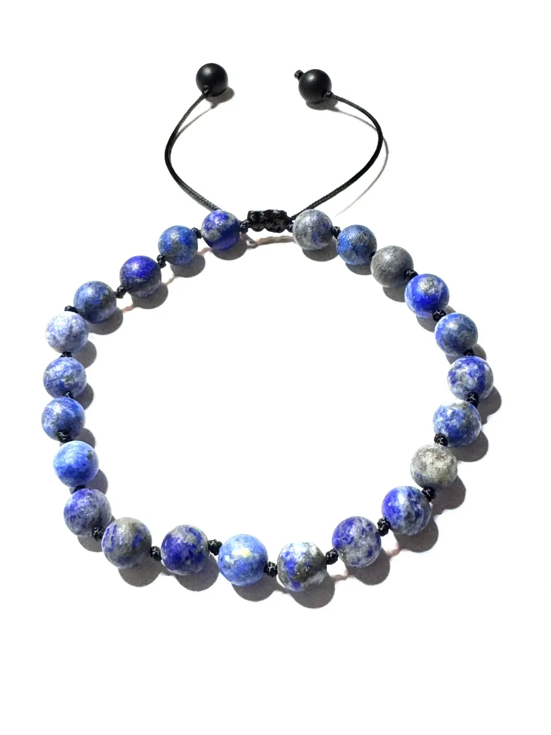 Bransoletka męska z kamieni naturalnych. Lapis lazuli ma właściwości psychiczne, duchowe i fizyczne, a w medycynie niekonwencjonalnej jest znany jako kamień ochronny i uzdrawiający, wspierający m.in. komunikację, rozwój intuicji i równowagę emocjonalną