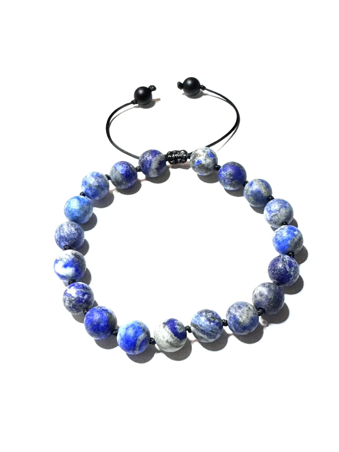 Bransoletka męska z kamieni naturalnych. Lapis lazuli ma właściwości psychiczne, duchowe i fizyczne, a w medycynie niekonwencjonalnej jest znany jako kamień ochronny i uzdrawiający, wspierający m.in. komunikację, rozwój intuicji i równowagę emocjonalną.