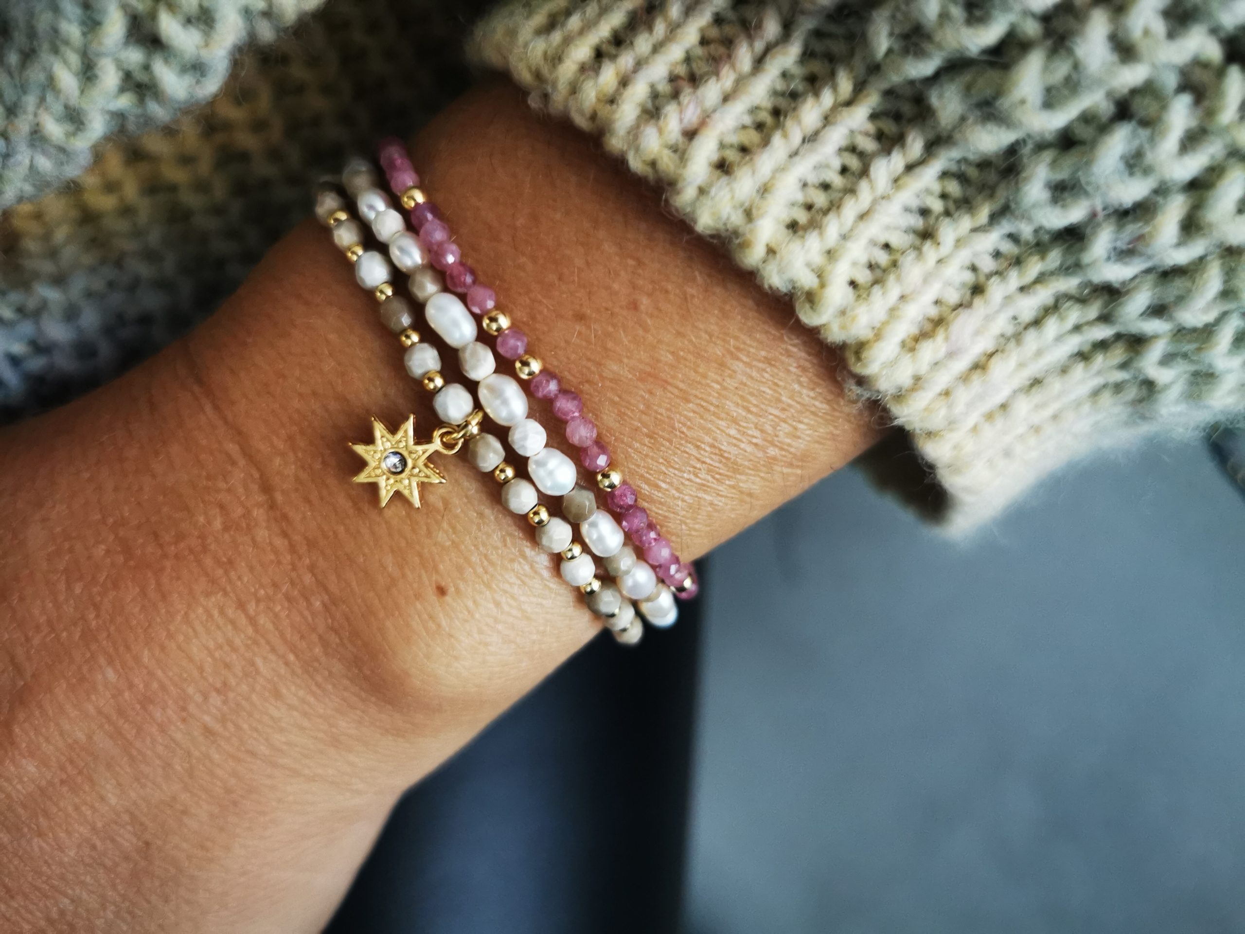 Bransoletka Pink Tourmaline wykonana z naturalnych kamieni -turmalin różowy 2,5mm ora kuleczek ze srebra pokrytego złotem o grubości 1 microna.