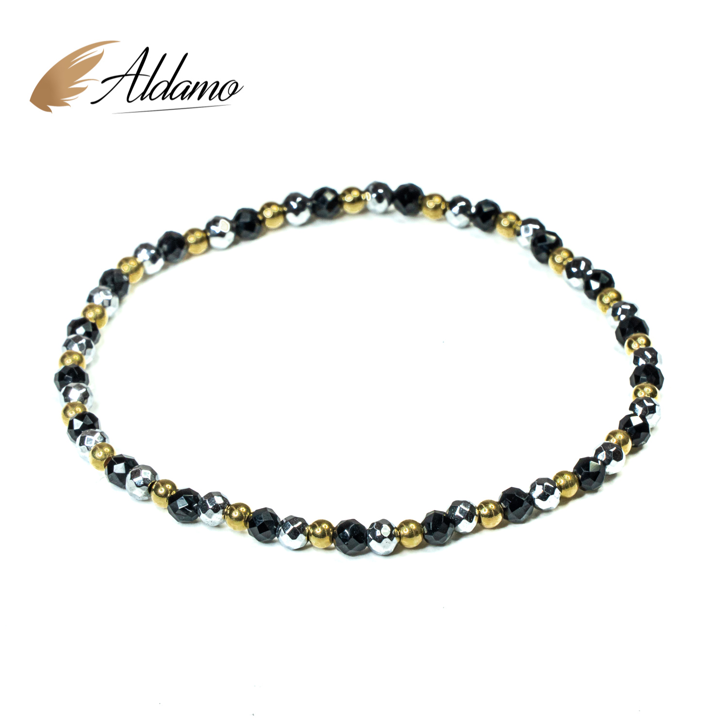 Bransoletka shine&black wykonana z naturalnych kamieni-hematyt, czarny turmalin 3mm oraz kuleczek gold filled 2,5mm.