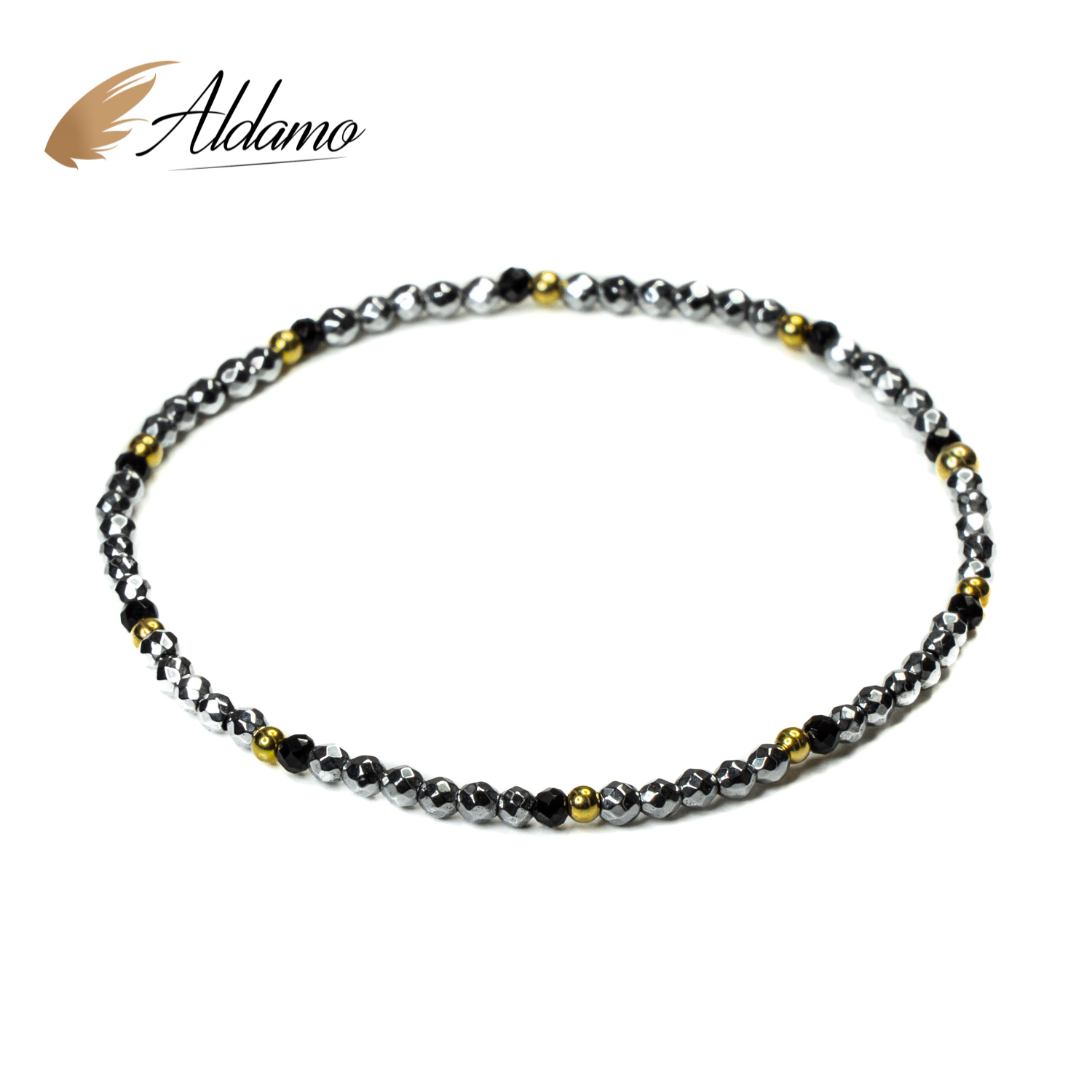Bransoletka Shine&Dark  wykonana z naturalnych kamieni -hematytu ,czarnego turmalinu 2mm oraz kuleczek ze srebra pokrytego złotem o grubości 1 microna.
