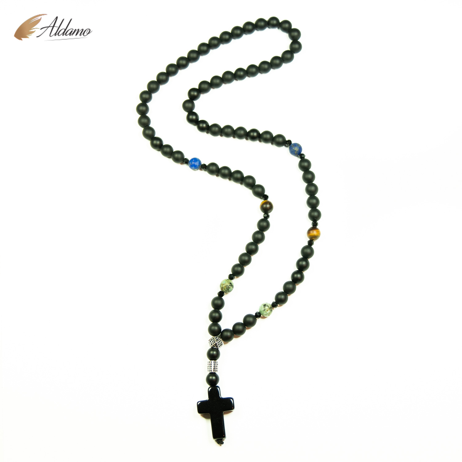 Naszyjnik wykonany na sznurku z naturalnych kamieni.