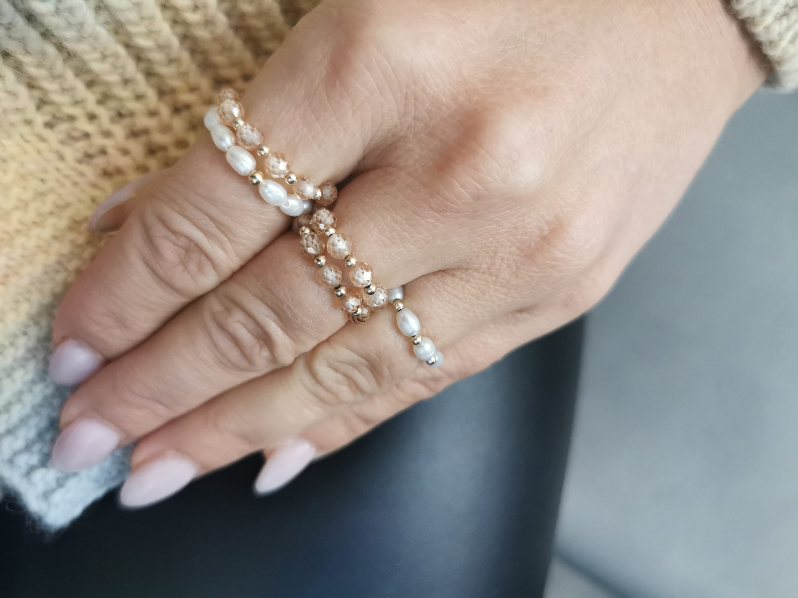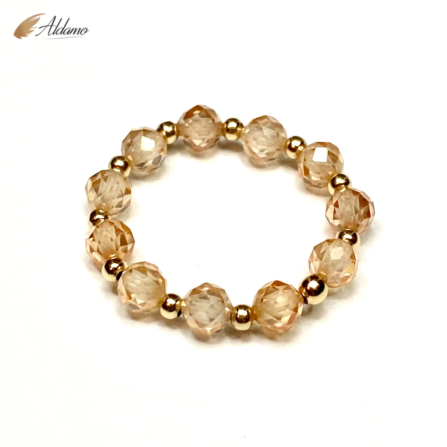 Pierścionek elastyczny wykonany z kryształów golden shadow 4mm oraz kuleczek gold-filled.