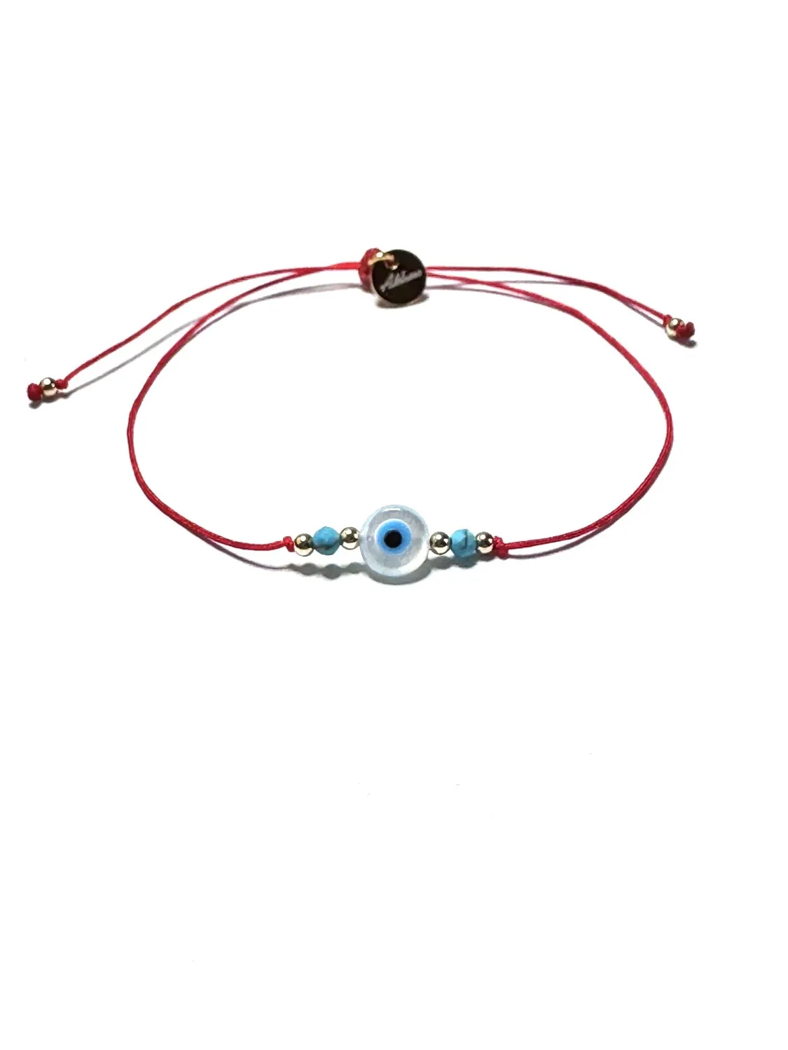 Bransoletka jest amuletem chroniącym przed mocą złego spojrzenia. Oko proroka wykonane z masy perłowej. Kuleczki gold filled 2mm.